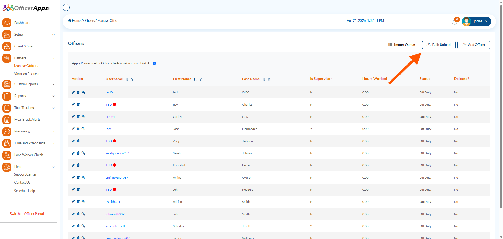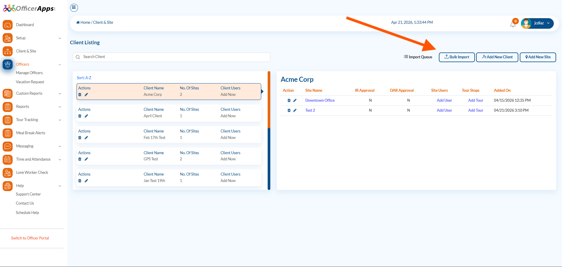 OfficerApps allows you to bulk upload both officers and sites, helping you save time when managing large amounts of data.